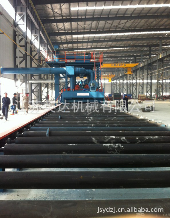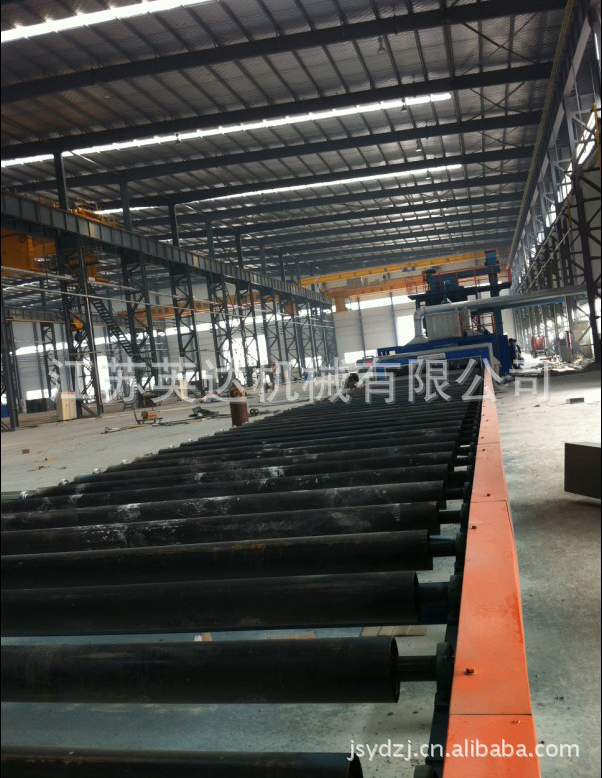 本鋼材預處理是在國內(nèi)外同類產(chǎn)品的基礎上,開發(fā)的機電一體化的新產(chǎn)品,整條流水線采用進口工業(yè)PLC機控制,實現(xiàn)了從上料→送進→拋丸清理→清掃→噴漆→烘干→送出全過程自動化(并可以自動和手動進行切換),操作方便自如,是目前對鋼板、型材、結(jié)構(gòu)件進行表面除銹、除焊渣去應力、噴漆、等預處理的理想的自動化成套設備。